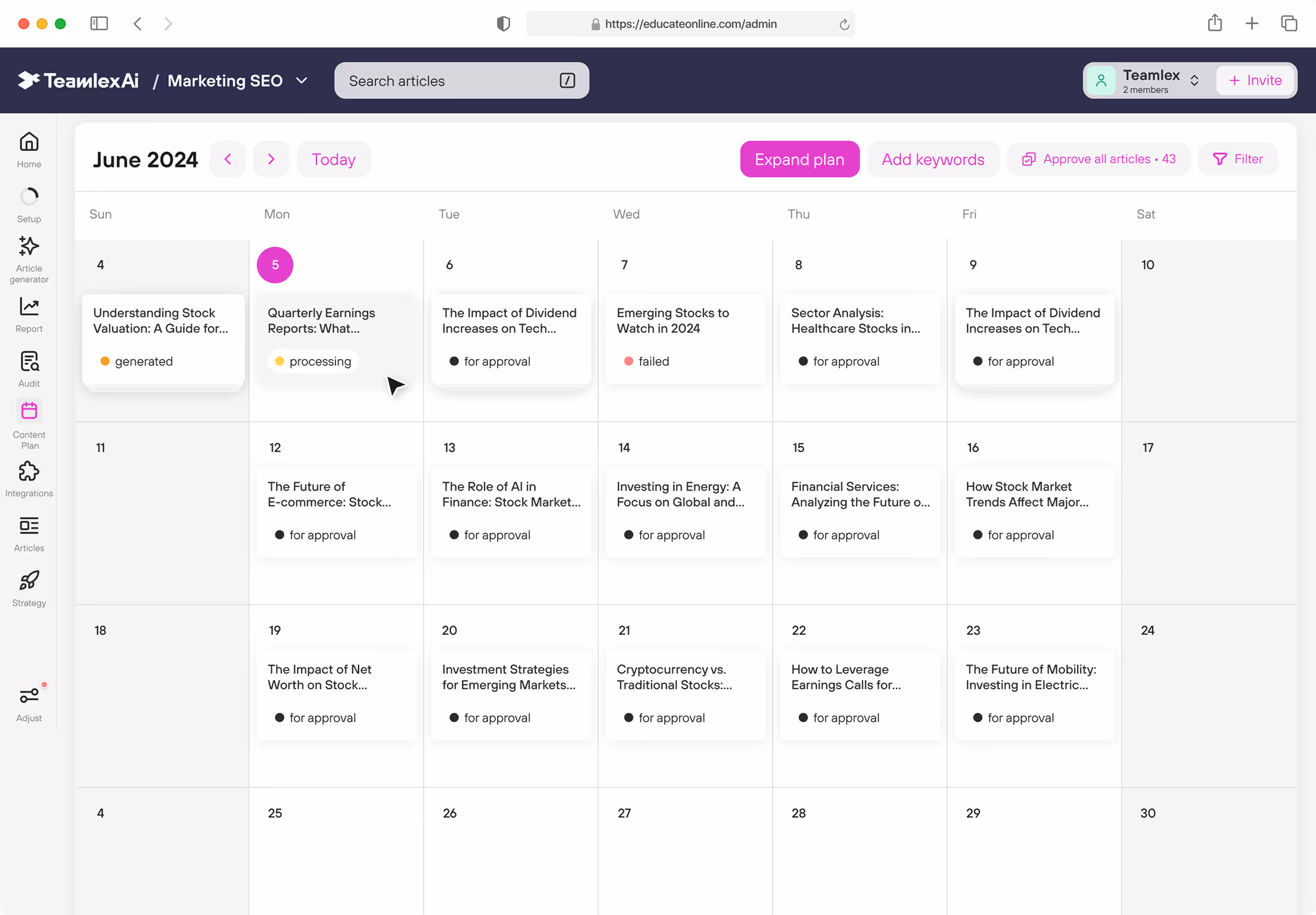 Most research, content generation, and publishing are automated. Your team stays focused on strategy.